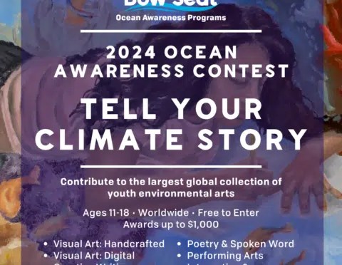 The 13th annual Ocean Awareness Contest is a platform for young people to learn about environmental issues through art-making and creative communication, explore their relationship to a changing world, and become advocates for positive change. Students ages 11-18 from around the world are invited to participate.