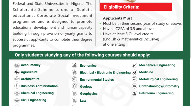 Applications are subject to the SEPLAT JV Scholarship Award Terms and Conditions.