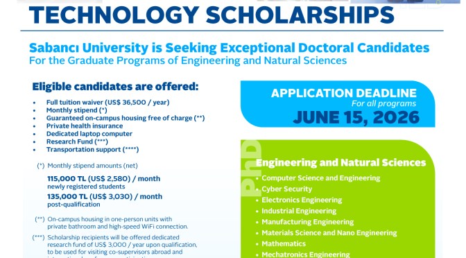Applicants must be admitted to Sabanci University, Turkey.
